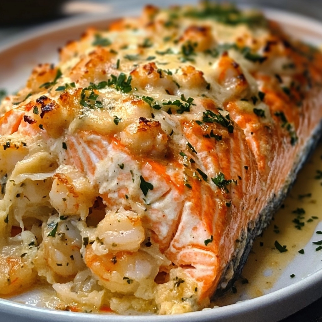 Crab and Shrimp Stuffed Salmon – A Gourmet Seafood Dinner Made Easy