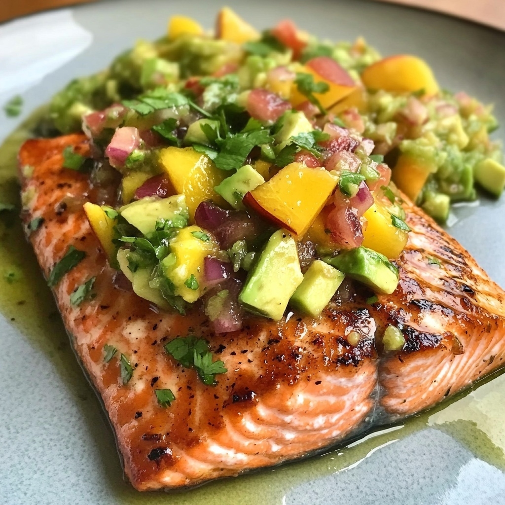 1. Plate the salmon and top generously with the peach avocado salsa.