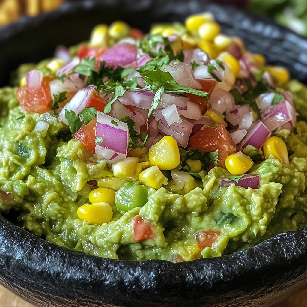 This Guacamole with Corn recipe is a refreshing twist on the classic dip. With its creamy avocado base, sweet corn kernels, and zesty lime finish, it’s a guaranteed crowd-pleaser for parties, family meals, or even a quick afternoon snack.