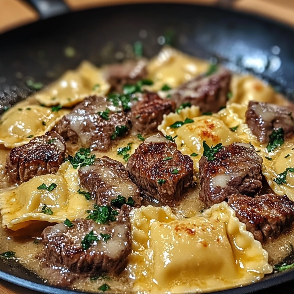 With buttery garlic sauce coating tender ravioli and perfectly seared steak, this recipe delivers satisfaction in every forkful — and might just become your new favorite indulgence.