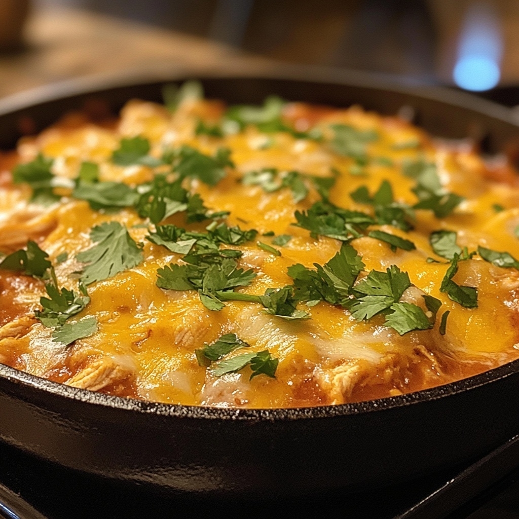 If you’re looking for a quick, comforting meal that’s bursting with bold, zesty flavor, this Chicken Enchilada Skillet delivers everything you love about enchiladas — without the fuss of rolling or baking.