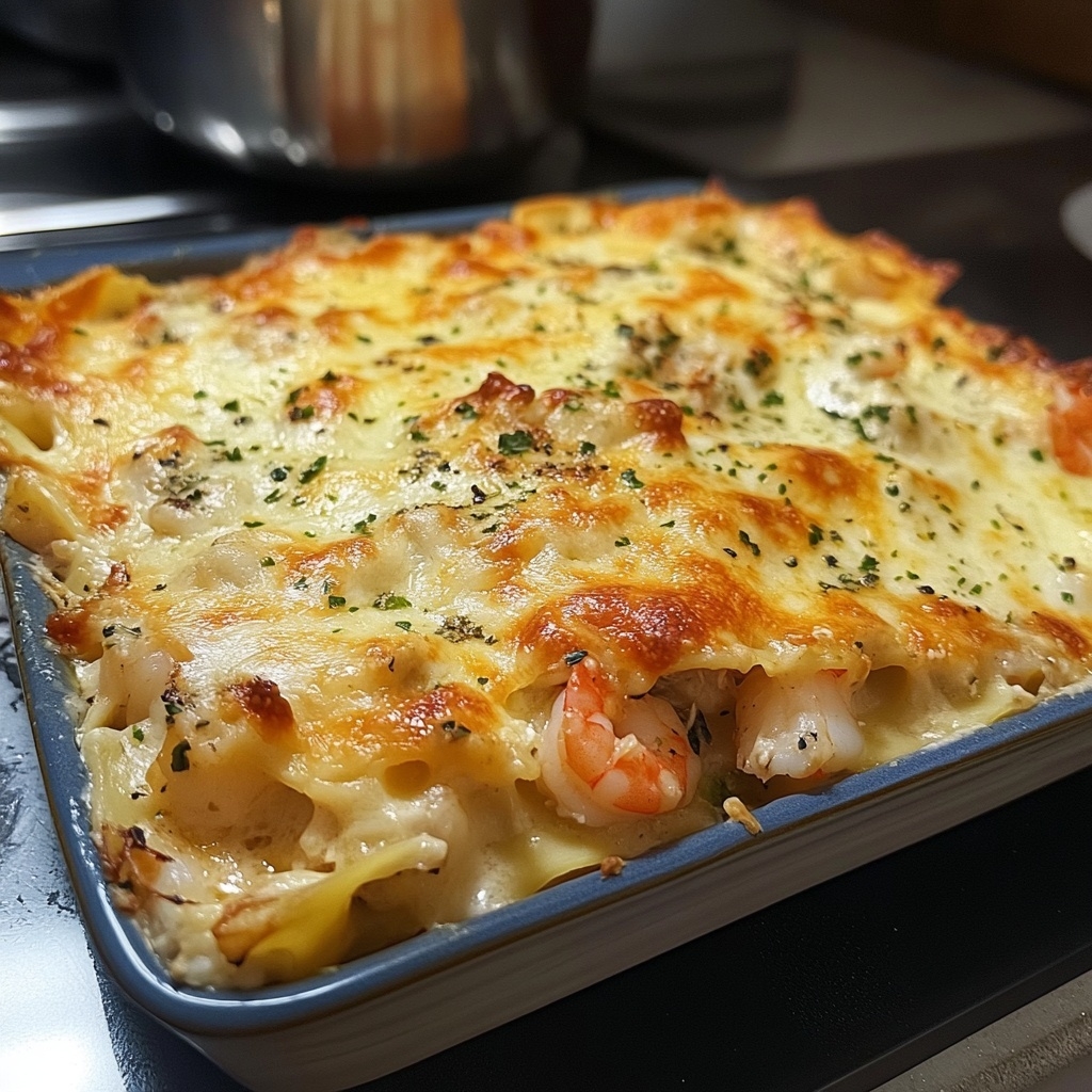 Unlike traditional lasagna with tomato-based sauces, this version is crafted with a velvety white sauce, making it rich yet surprisingly balanced. The blend of seafood and creamy cheeses creates a dish that feels restaurant-worthy but can be made in your own kitchen with ease.