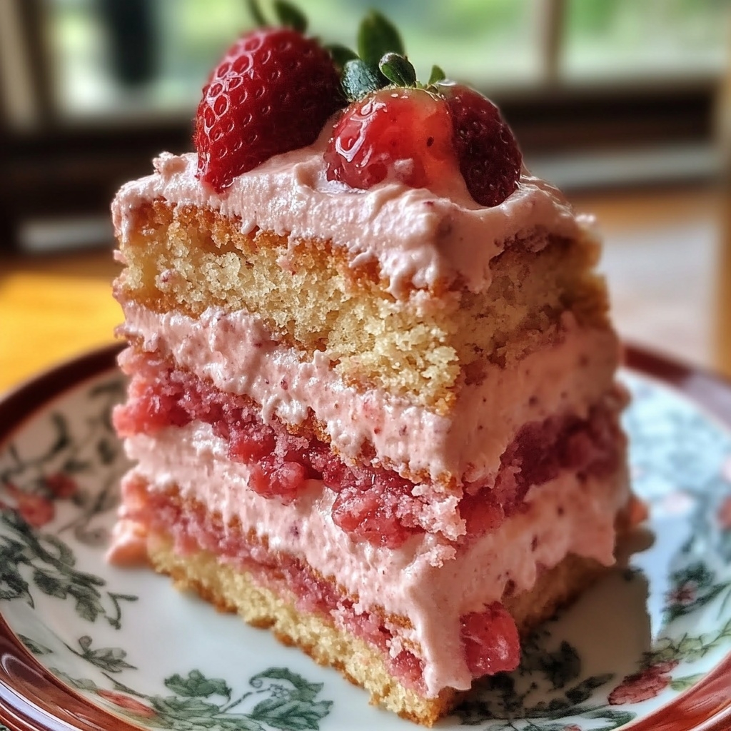 - Spread the strawberry cream mixture evenly over the cooled cake.