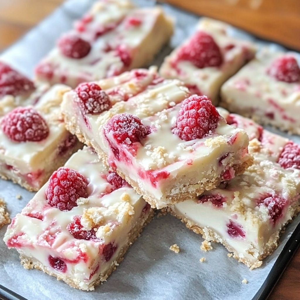 Perfect for holidays, tea parties, bake sales, or a refined after-dinner treat, these bars are as beautiful to serve as they are delicious to eat. The contrast between tart raspberries and smooth white chocolate makes each bite feel balanced and luxurious.